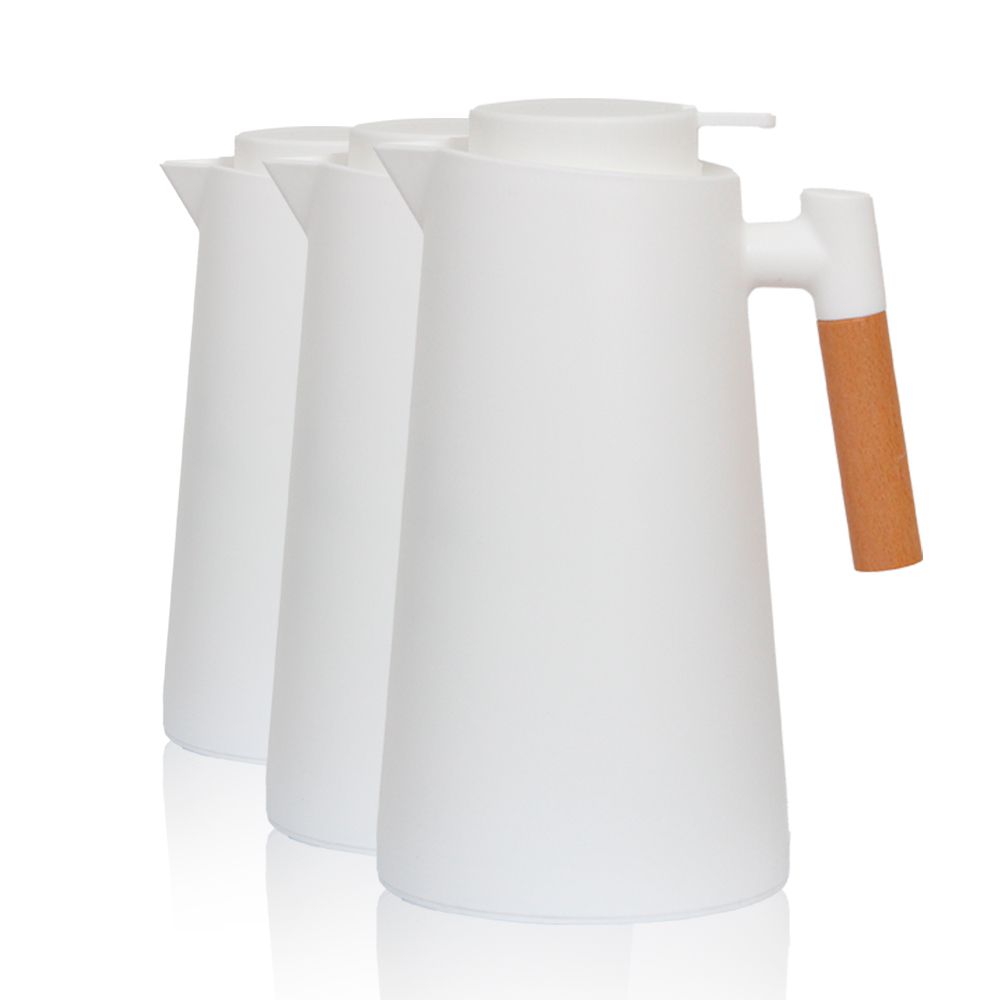 3 Garrafa Térmica A Vácuo 1 Litro Cabo De Madeira Cor Branca