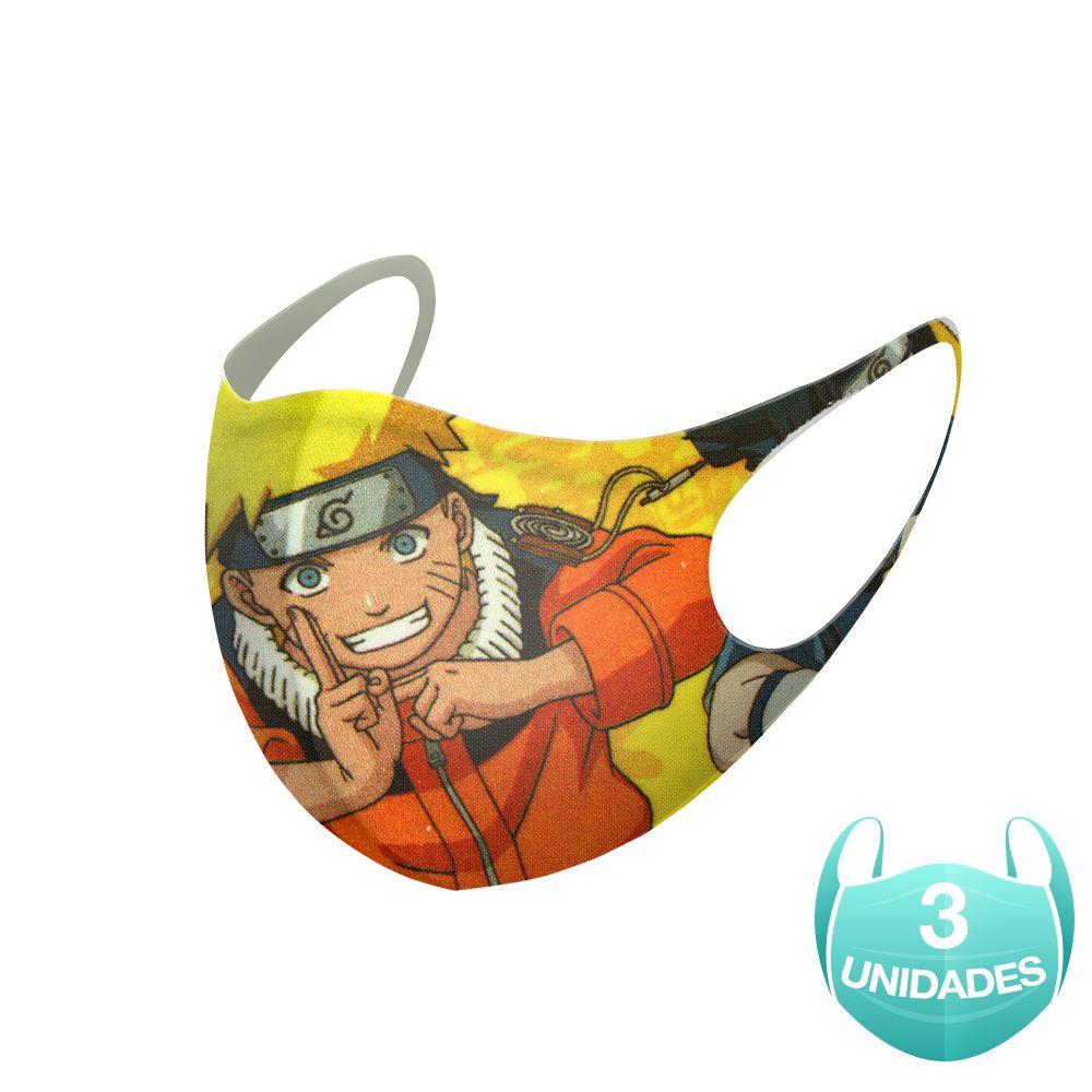 3 Máscaras Lavável Infantil do Desenho Naruto Neoprene