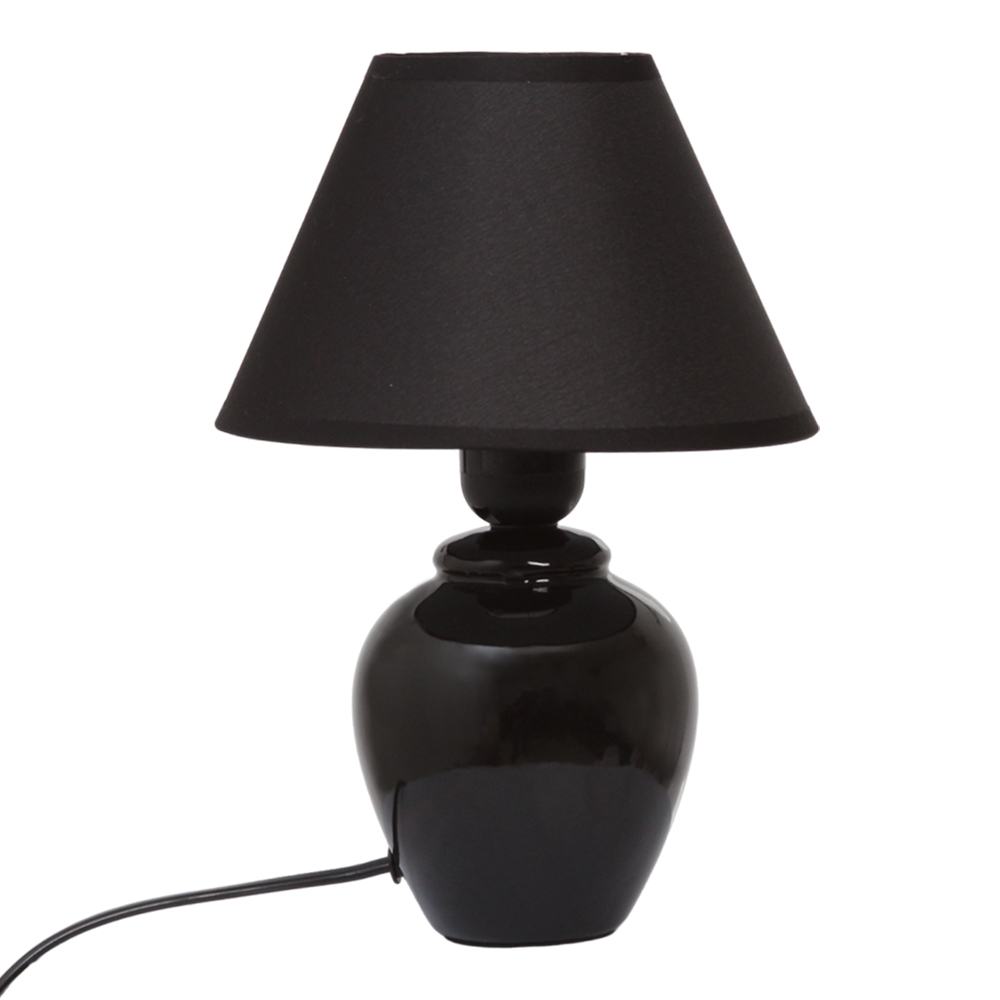 Abajur De Quarto Cerâmica Cúpula Tecido Cor Preto Clássico