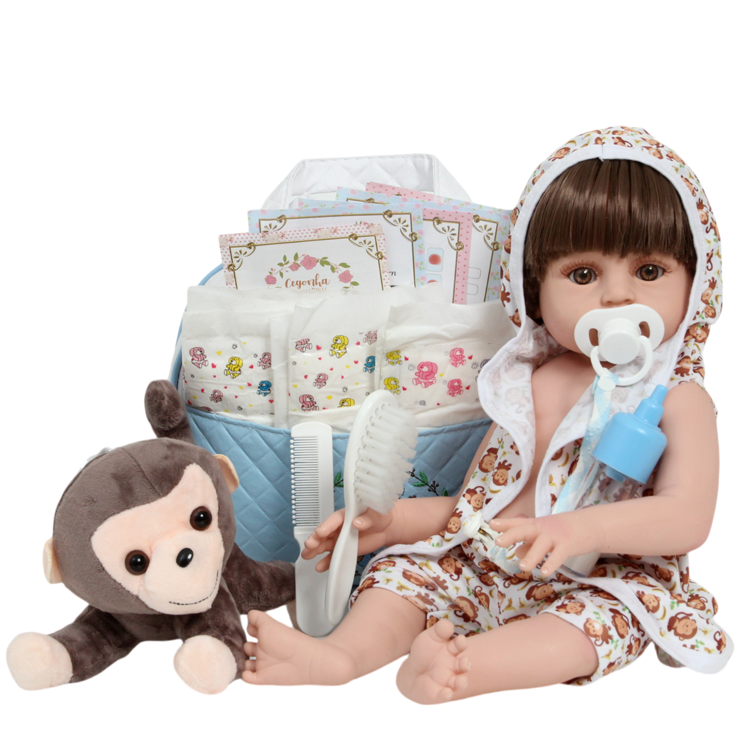 O Boneco Reborn é o sonho da criançada! Produzido 100% em vinil siliconado, esse boneco pode sentar, deitar e fazer tudo que a sua imaginação deixar. Com seus olhos castanhos e detalhes realistas ele é encantador e apaixonante. Sua criança merece a melhor qualidade de bebê reborn!