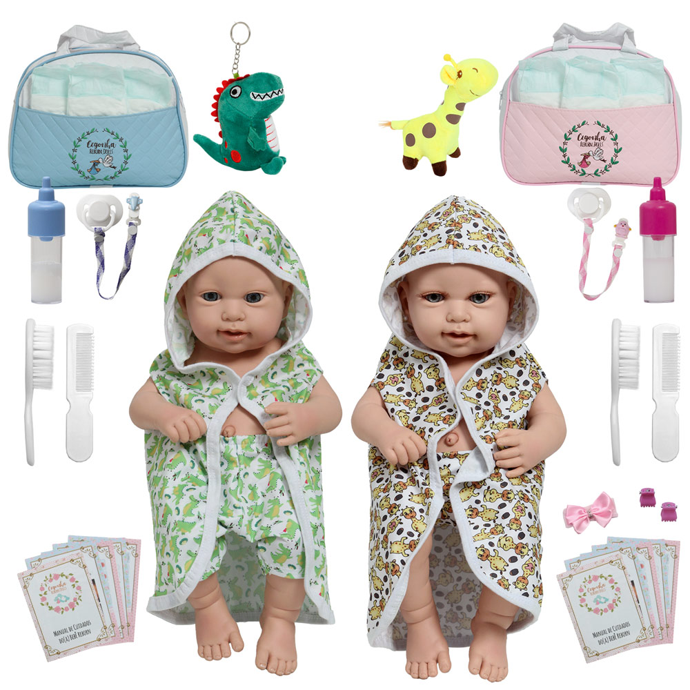 Bonecos Bebê Reborn Gêmeos são o sonho das meninas! Produzidos 100% em vinil siliconado, esses bonecos podem sentar, deitar e fazer tudo que a sua imaginação deixar. Com seus lindos olhos e detalhes realistas eles são encantadores e apaixonantes. Sua criança merece a melhor qualidade de bebê reborn!