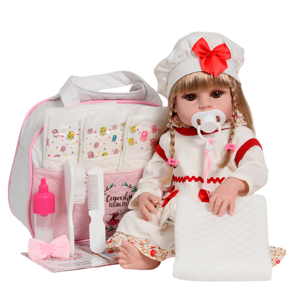 Bebê Reborn Loira Corpo De Vinil Vários Itens Bolsa Enxoval