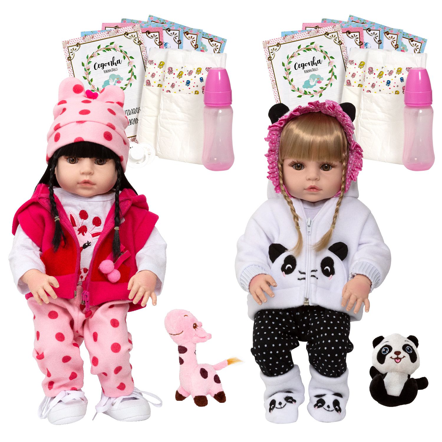 Bebê Reborn Realista Gêmeas Girafinha Morena Pandinha Loira
