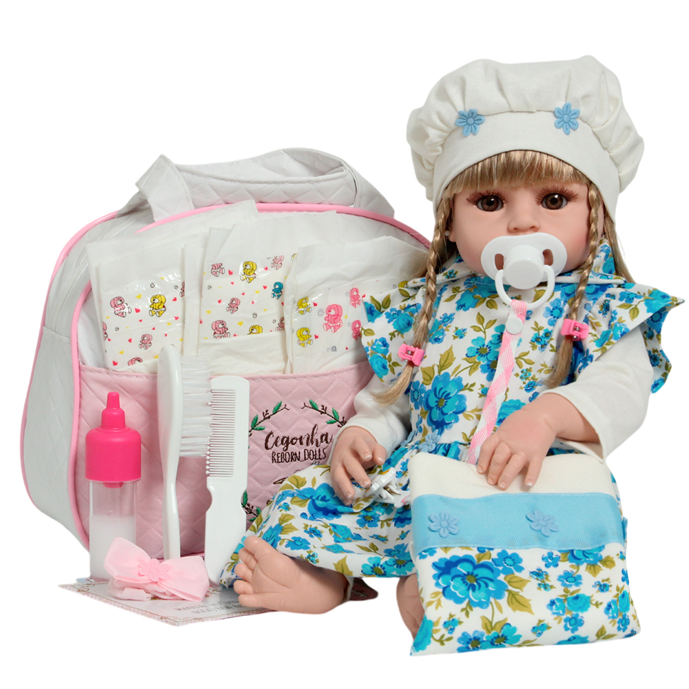 Boneca Bebê Reborn Loira Realista Enxoval Completo Bolsa