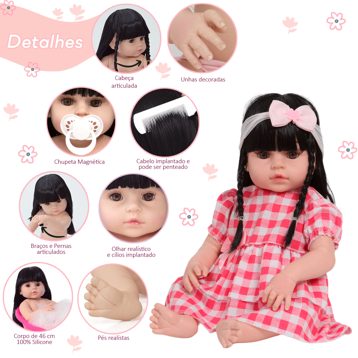 Tags: Realista, Menina, Infantil, Silicone, Princesa, Linda, Morena, Loira, Fofa, Banho, Enxoval, Completo, Grande.