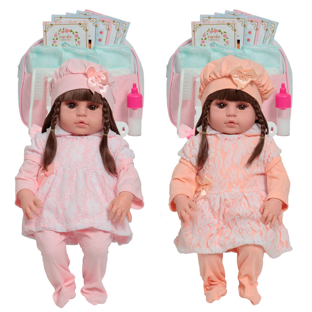 As Bonecas Bebê Reborn Gêmeas são o sonho das meninas! Produzida 100% em vinil siliconado, essas bonecas podem sentar, deitar e fazer tudo que a sua imaginação deixar. Com seus olhos castanhos e detalhes realistas elas são encantadoras e apaixonantes. Sua criança merece a melhor qualidade de bebê reborn!