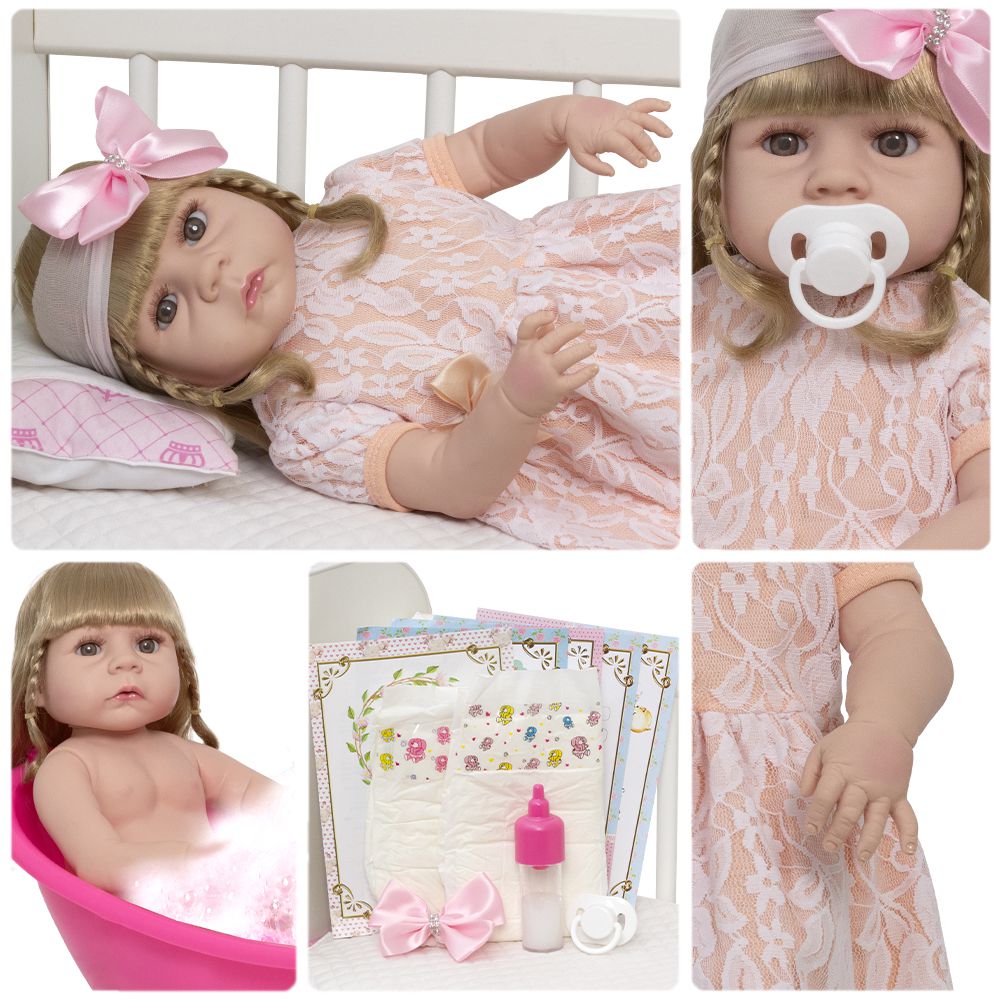 Tags: Realista, Menina, Infantil, Silicone, Princesa, Linda, Morena, Loira, Fofa, Banho, Enxoval, Completo, Grande.