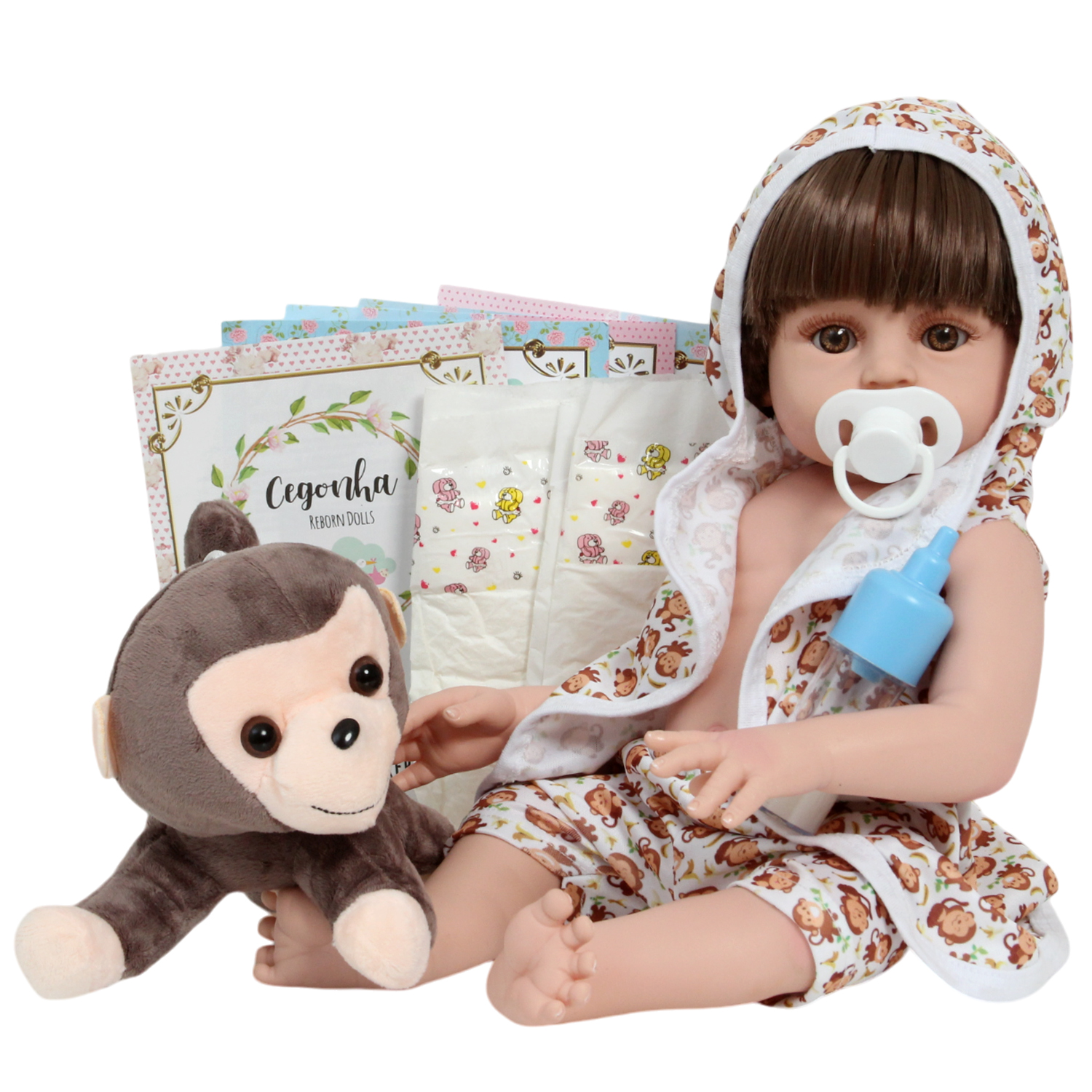 O Boneco Reborn é o sonho da criançada! Produzido 100% em vinil siliconado, esse boneco pode sentar, deitar e fazer tudo que a sua imaginação deixar. Com seus olhos castanhos e detalhes realistas ele é encantador e apaixonante. Sua criança merece a melhor qualidade de bebê reborn!