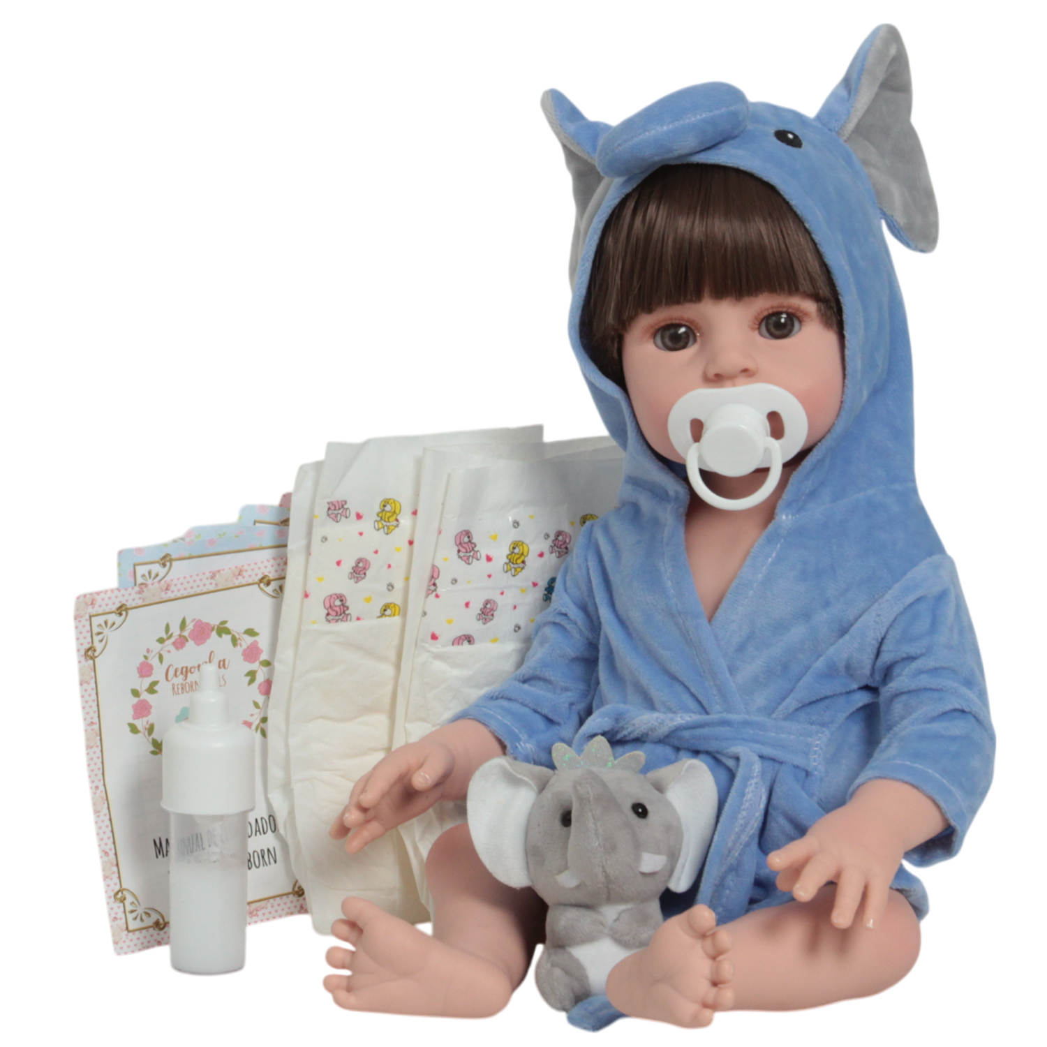 O Boneco Bebê Reborn é o sonho das crianças! Produzido 100% em vinil siliconado, esse boneco pode sentar, deitar e fazer tudo que a sua imaginação deixar. Com seus olhos castanhos e detalhes realistas ele é encantador e apaixonante. Sua criança merece a melhor qualidade de bebê reborn!