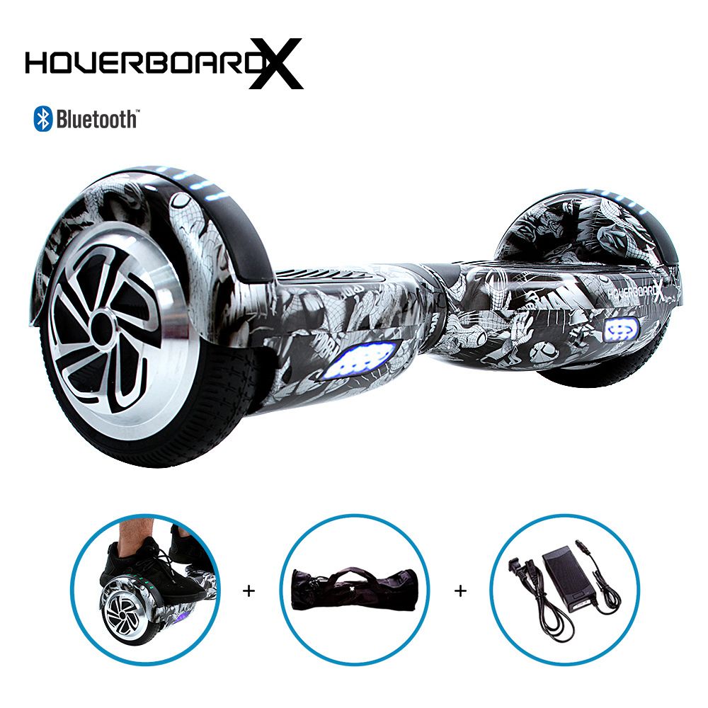 O HoverboardX agora com seus personagens e temas favoritos do Homem-Aranha, poderá te acompanhar em qualquer aventura, com os HoverboardsX você pode atingir velocidades de até 15Km/h aproximadamente, e oferece uma autonomia de 10 a 15 Km por carga, dependendo das condições do caminho e peso do usuário. Pesando pouco mais de 10 kg, é fácil de carregar no ônibus ou metrô e é amigo do meio ambiente perfeito para ir e vir do escritório, metro, estacionamento ou escola. Design à prova de poeira e respingos com classificação IP54. O Hoverboard possui função Bluetooth e Luz de LED para melhor segurança na escuridão.
