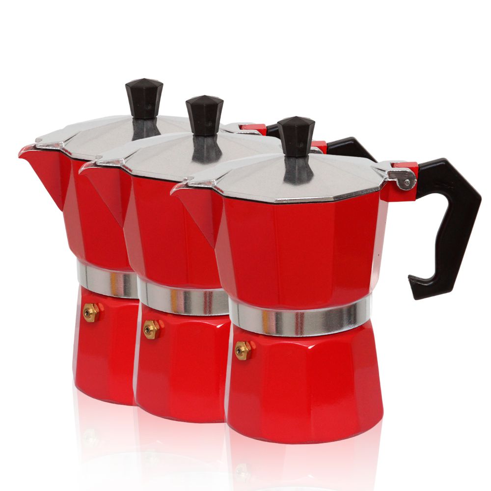 Kit 3 Cafeteira Italiana 450ml Manual Para Fogão Vermelha