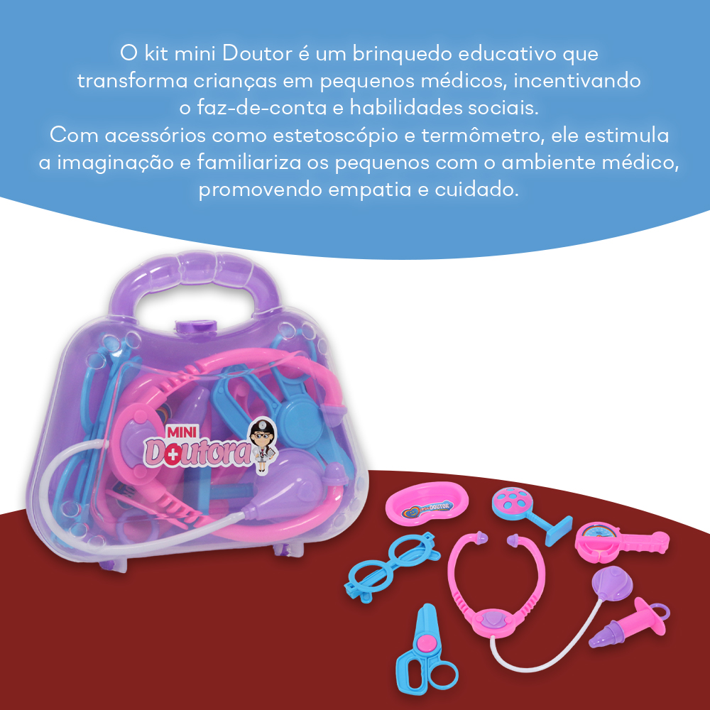 Um conjunto completo e encantador para as crianças que adoram brincar de médico! Este kit é perfeito para estimular a criatividade e o aprendizado dos pequenos, permitindo que eles explorem o mundo da medicina de forma lúdica e educativa. Esta brincadeira de faz-de-conta não só diverte, mas também educa, preparando os pequenos para entenderem a importância dos cuidados com a saúde.