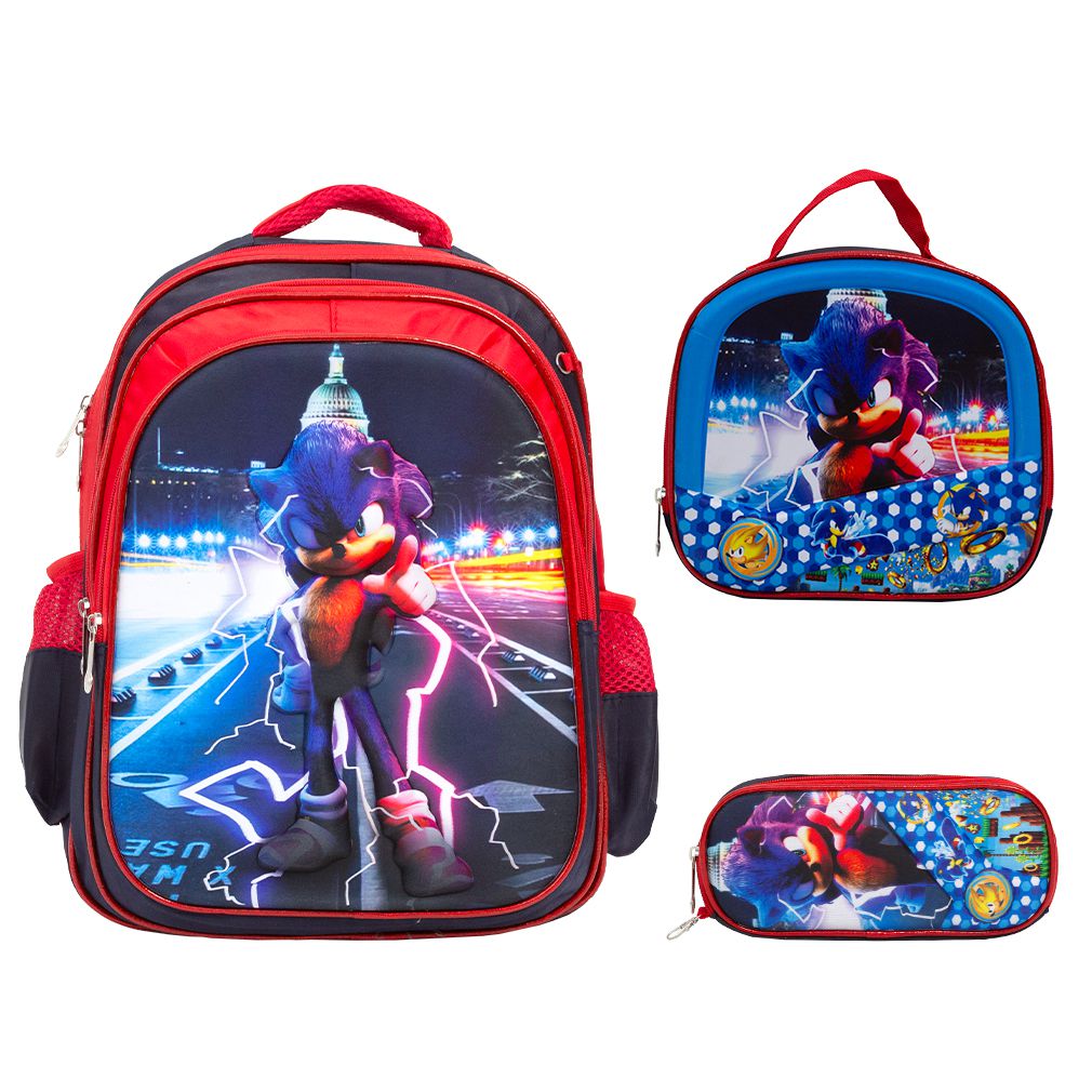 Kit Mochila Infantil Costas Menino Sonic 3D + Lancheira