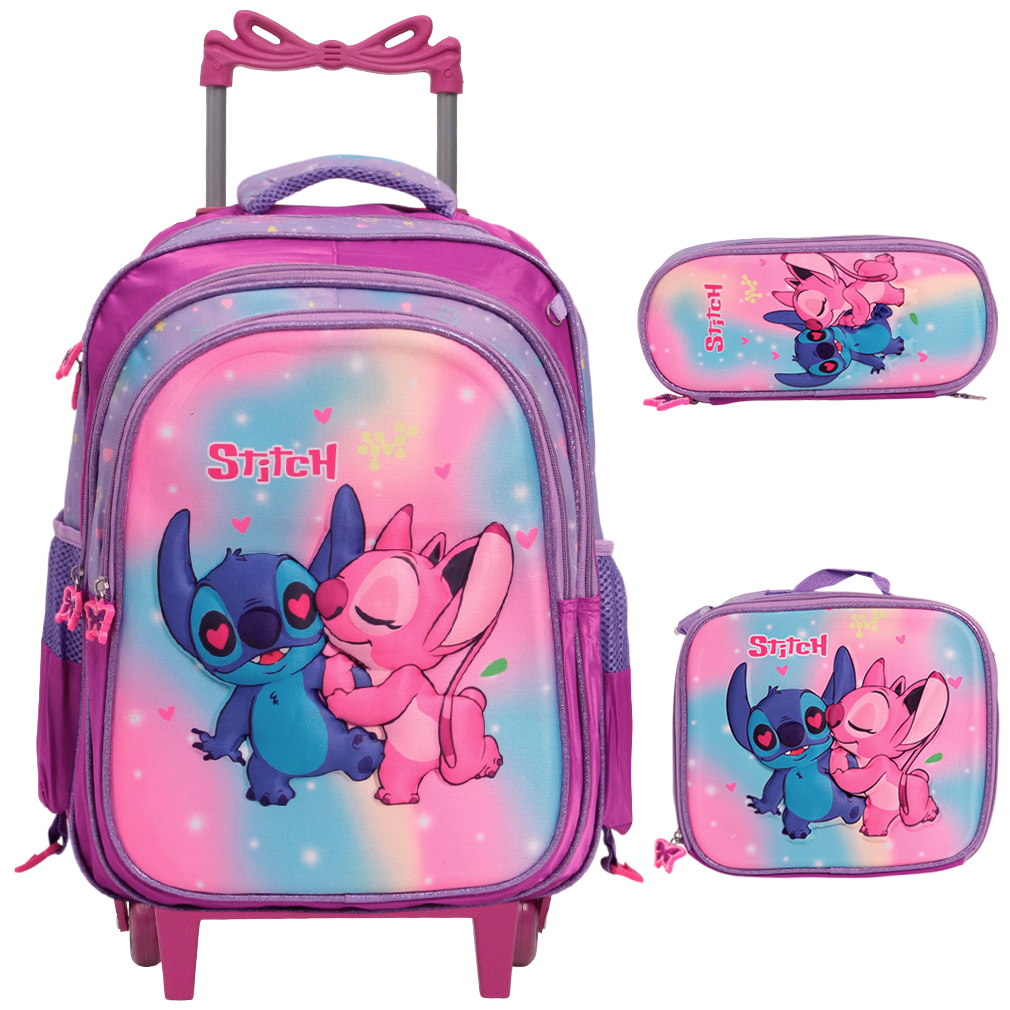 Kit Mochila Infantil De Rodinhas Stitch Lancheira Térmica