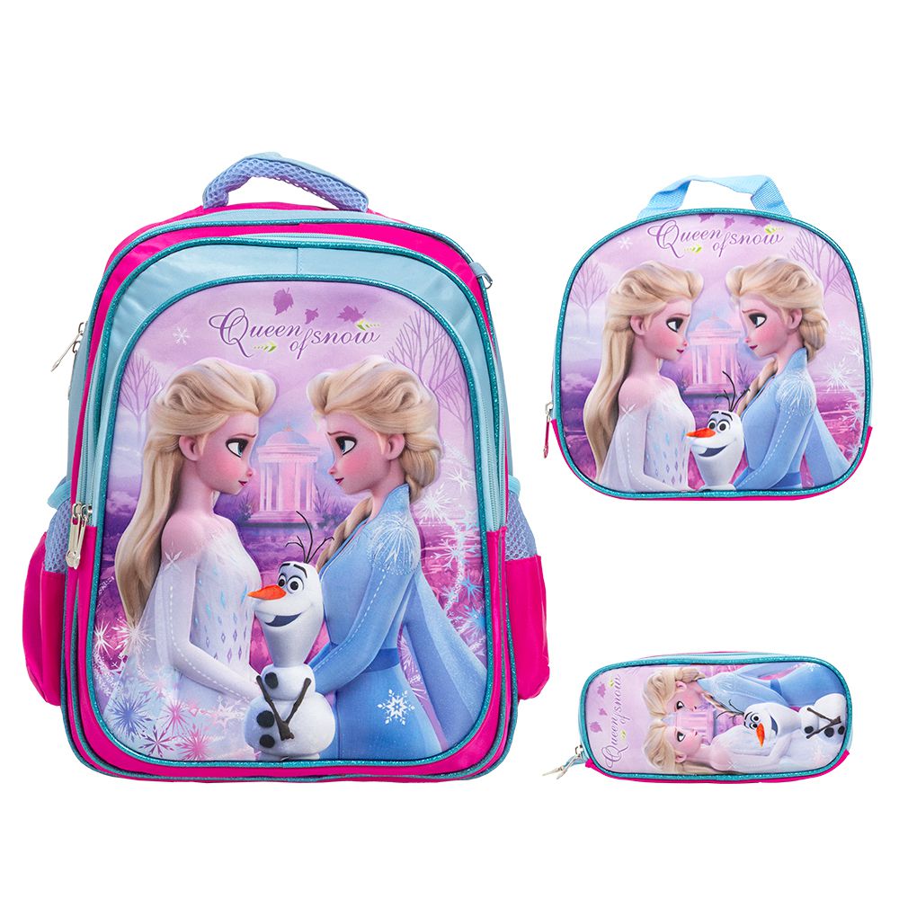 Kit Mochila Infantil Feminina Costas Frozen 3D Com Lancheira