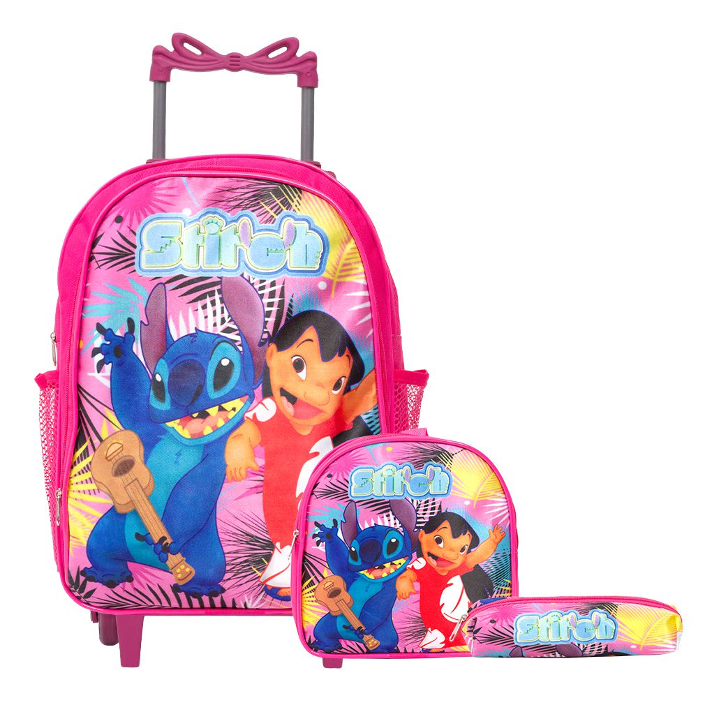 Kit Mochila Infantil Feminina Lilo & Stitch Rodinha Tam G