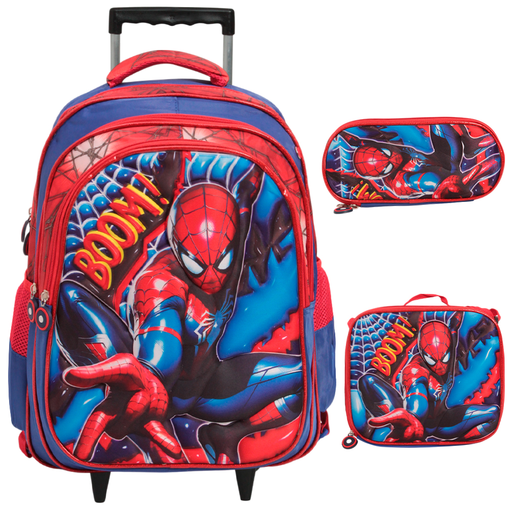 Kit Mochila Infantil Homem Aranha Rodinha 3d Resistente
