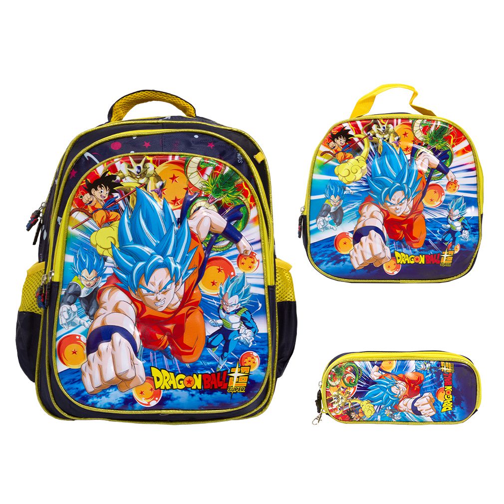 Kit Mochila Infantil Masculina Dragon Ball 3D Com Lancheira