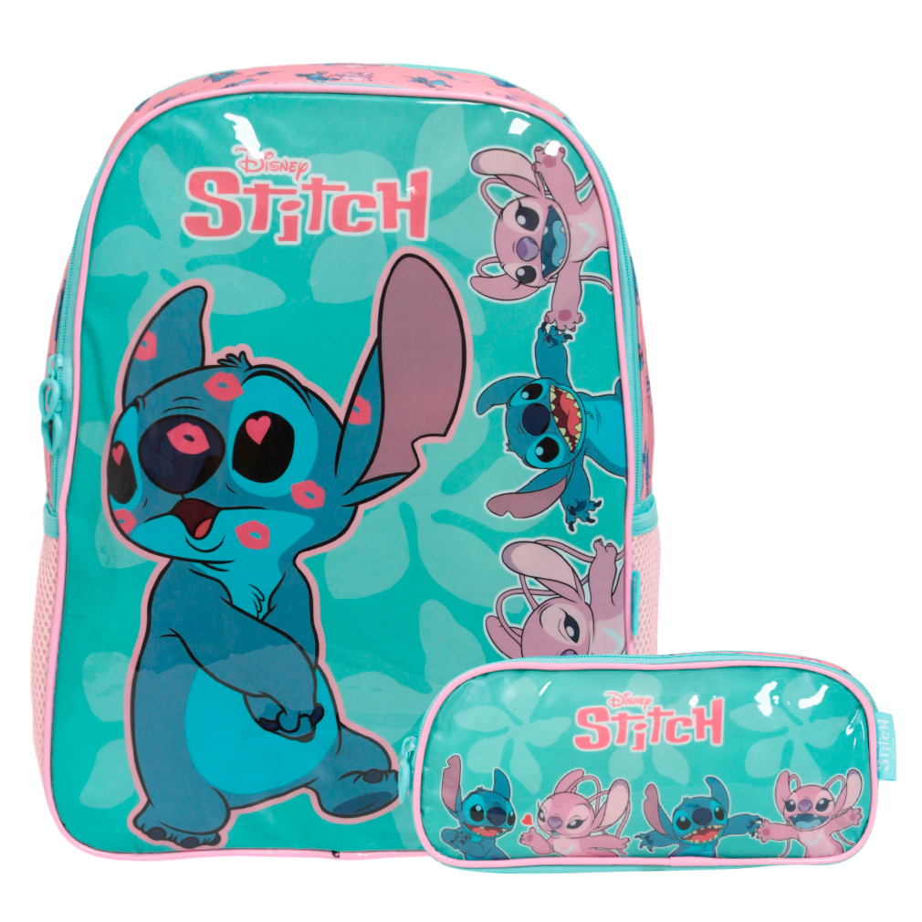 Kit Mochila Escolar Infantil Stitch, acompanha estojo. Possui alça de mão reforçada. Agora você pode levar sua mochila no seu dia a dia ou acompanhar você na escola. Sua abertura maior se dá por zíper com puxador. Na parte de dentro possui amplo espaço para a guardar diversos materiais como cadernos, livros e estojos. Na parte da frente, possui bolso com zíper para a guardar pertences de menor tamanho e bolsos laterais.