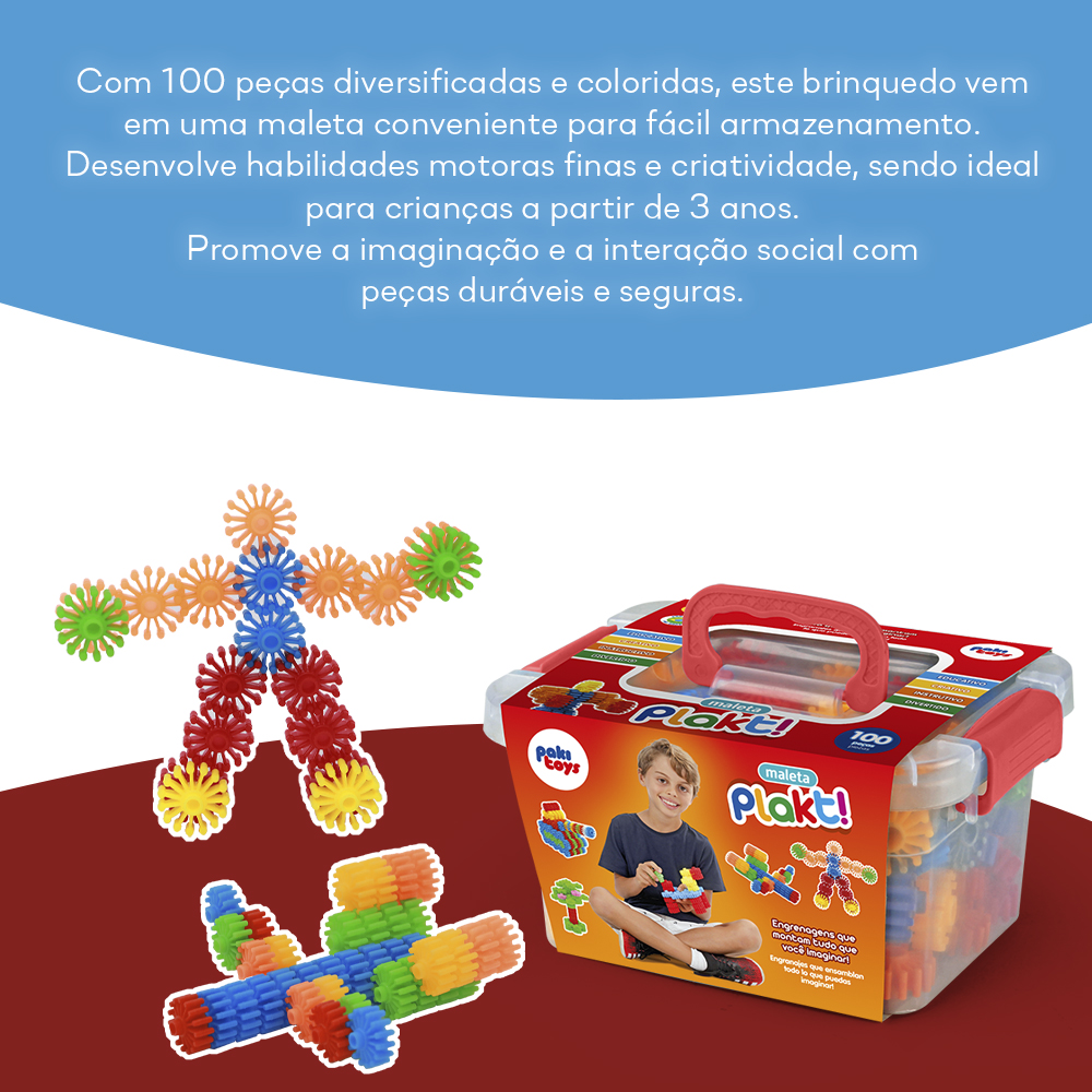 Maleta Plakt 100 Peças De Montar Didático Interativo