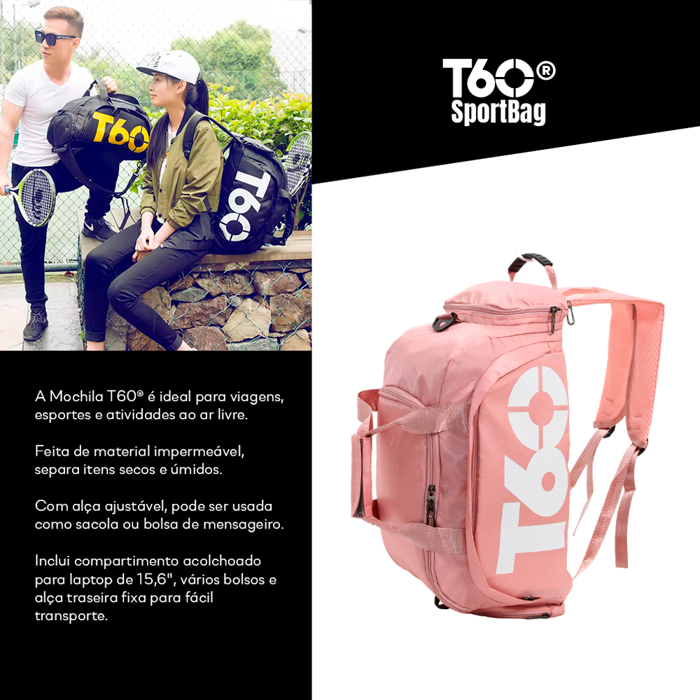 Mochila Bolsa T60 Esportiva Academia Impermeável Cor Rose
