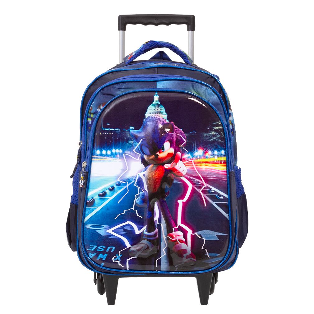 Mochila Escolar Infantil Sonic Rodinhas possui alça de mão reforçada. Agora você pode levar sua mochila no seu dia a dia ou acompanhar você na escola. Sua abertura maior se dá por zíper com puxador. Na parte de dentro possui amplo espaço para a guardar diversos materiais como cadernos, livros e estojos. Na parte da frente, possui bolso com zíper para a guardar pertences de menor tamanho.