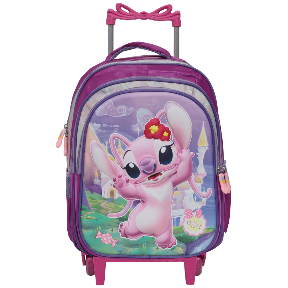 Mochila Infantil De Rodinhas Lilo E Stitch Angel Cor Roxo