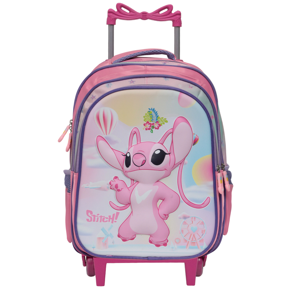 Mochila Escolar Infantil Stitch Rodinhas possui alça de mão reforçada. Agora você pode levar sua mochila no seu dia a dia ou acompanhar você na escola. Sua abertura maior se dá por zíper com puxador. Na parte de dentro possui amplo espaço para a guardar diversos materiais como cadernos, livros e estojos.