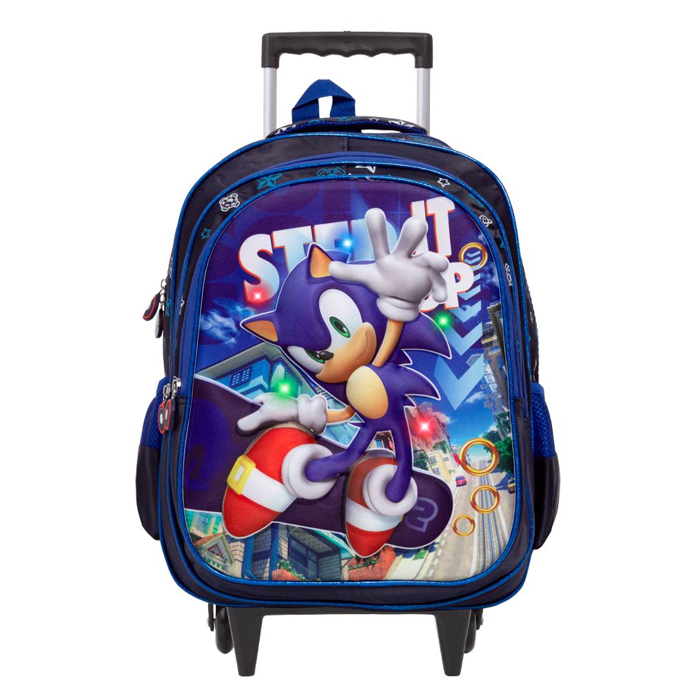 Mochila Escolar Infantil Sonic Rodinhas possui alça de mão reforçada. Agora você pode levar sua mochila no seu dia a dia ou acompanhar você na escola. Sua abertura maior se dá por zíper com puxador. Na parte de dentro possui amplo espaço para a guardar diversos materiais como cadernos, livros e estojos. Na parte da frente, possui luzes de led que piscam na frente, tornando-a ainda mais divertida e atraente.