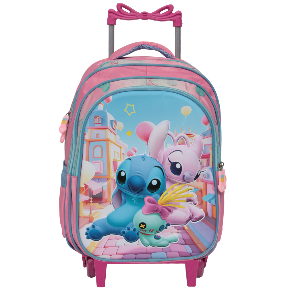 Mochila Escolar Infantil Stitch Rodinhas possui alça de mão reforçada. Agora você pode levar sua mochila no seu dia a dia ou acompanhar você na escola. Sua abertura maior se dá por zíper com puxador. Na parte de dentro possui amplo espaço para a guardar diversos materiais como cadernos, livros e estojos.