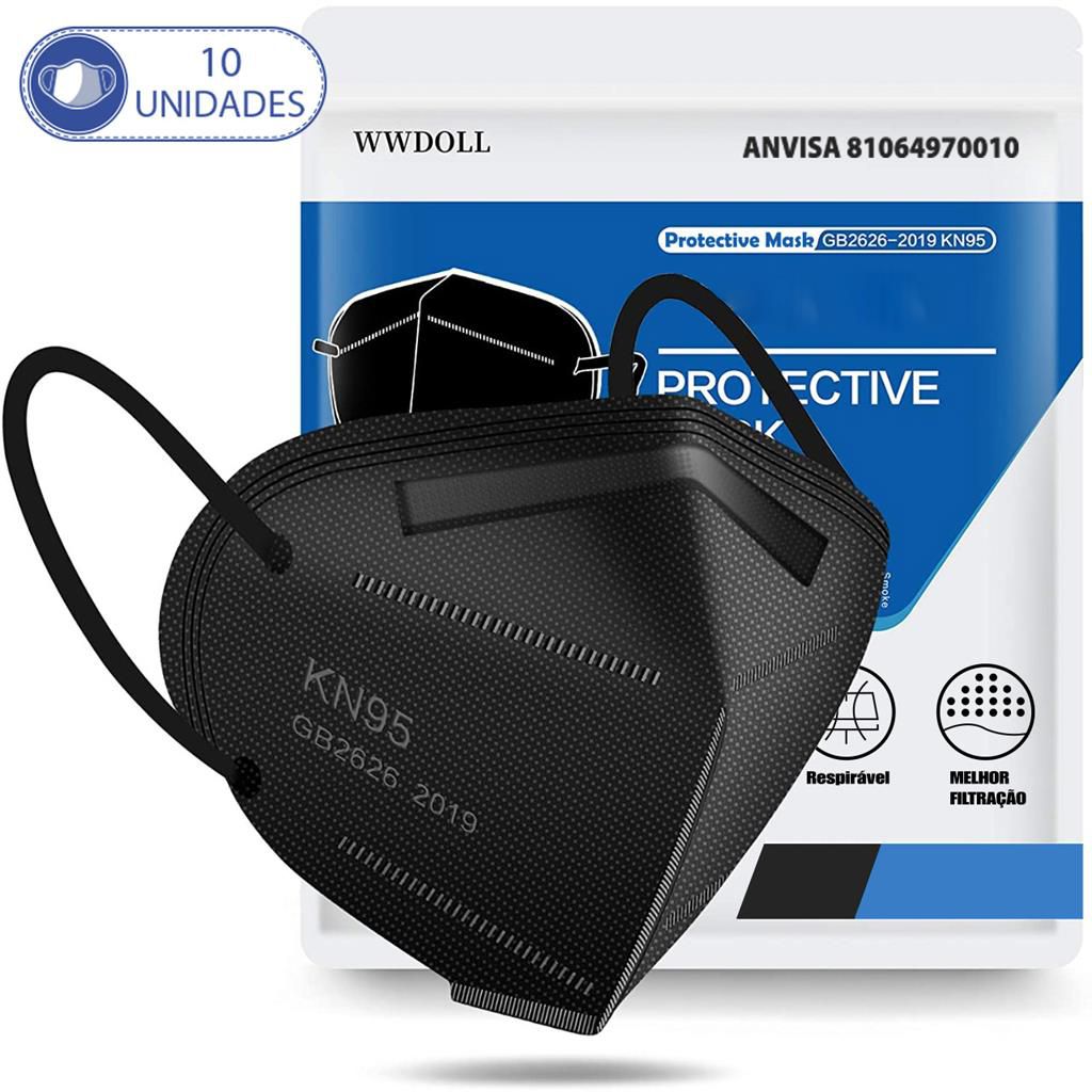 10 Máscaras Descartáveis Preta KN95 PFF2 WWDoll Cód Anvisa