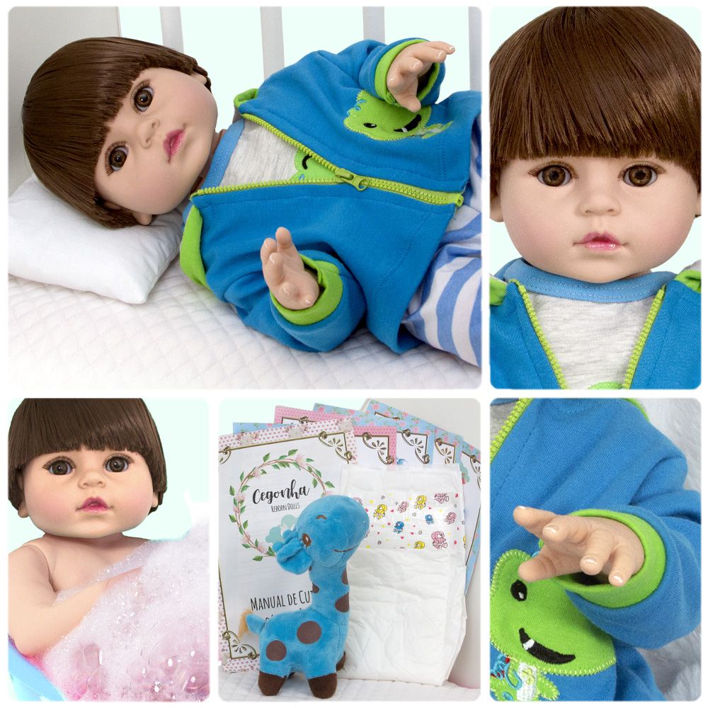 O Boneco Bebê Reborn é o sonho das crianças! Produzido 100% em vinil siliconado, esse boneco pode sentar, deitar e fazer tudo que a sua imaginação deixar. Com seus olhos castanhos e detalhes realistas ele é encantador e apaixonante. Sua criança merece a melhor qualidade de bebê reborn!