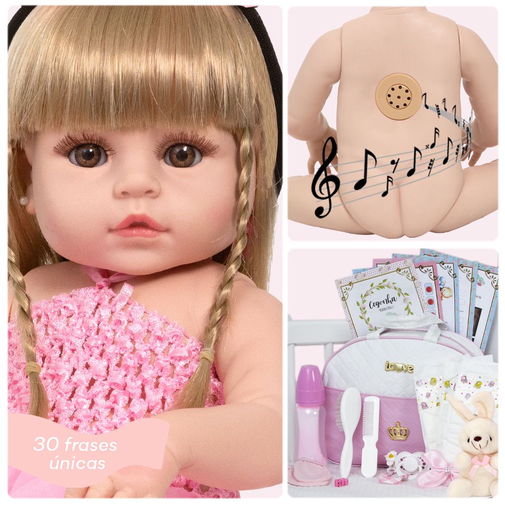 Boneca Reborn Realista Bailarina Loira 30 Frases Com Bolsa
