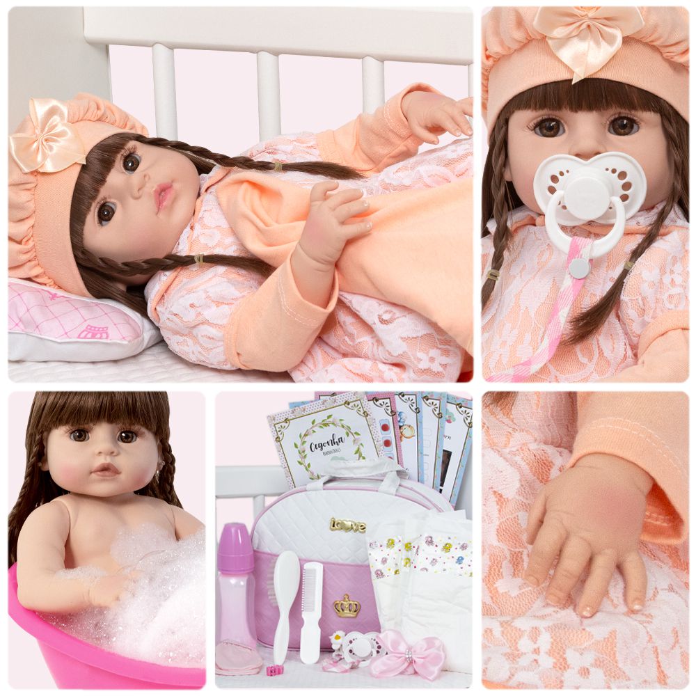 Boneca Reborn Realista Cabelo Castanho Fofa Enxoval Completo