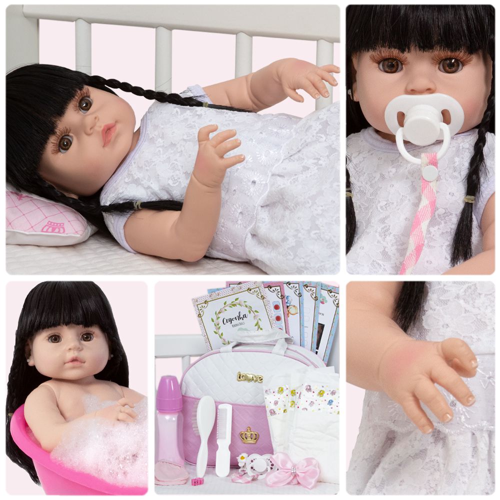 Boneca Reborn Realista Morena Pode Banho Bolsa + 20 Itens