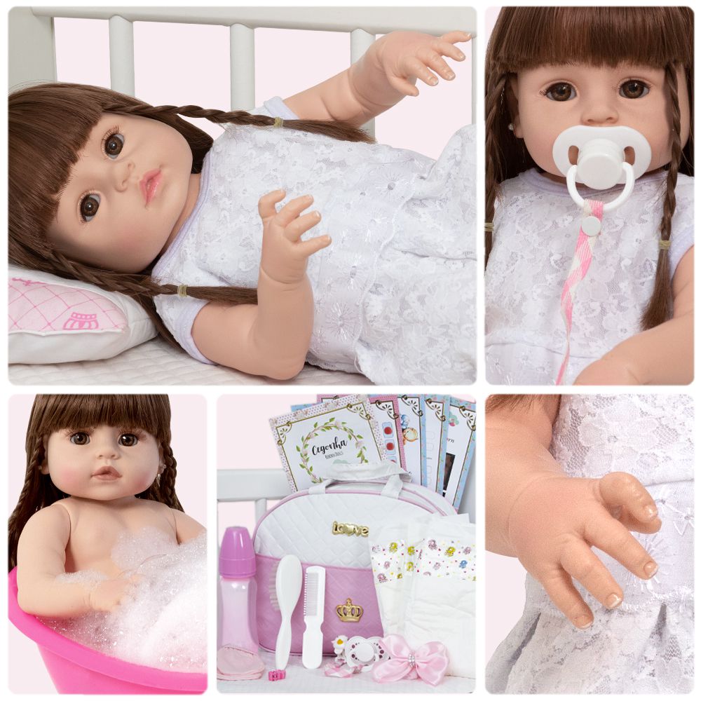 Tags: Realista, Menina, Infantil, Silicone, Princesa, Linda, Morena, Loira, Fofa, Banho, Enxoval, Completo, Grande, Baby Alive.