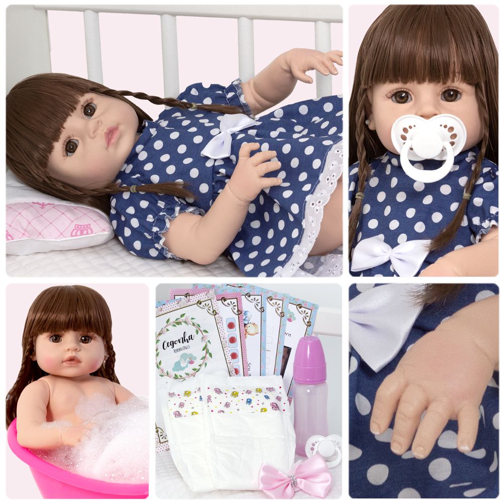 Tags: Boneca, Bebe, Reborn, Realista, Menina, Infantil, Silicone, Princesa, Linda, Morena, Loira, Fofa, Banho, Enxoval, Completo, Grande, Baby Alive.