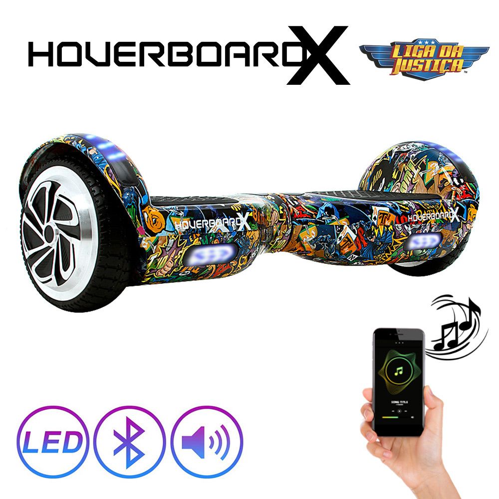 O HoverboardX agora com seus personagens e temas favoritos do Batman, poderá te acompanhar em qualquer aventura, com os HoverboardsX você pode atingir velocidades de até 15Km/h aproximadamente, e oferece uma autonomia de 10 a 15 Km por carga, dependendo das condições do caminho e peso do usuário. Pesando pouco mais de 10 kg, é fácil de carregar no ônibus ou metrô e é amigo do meio ambiente perfeito para ir e vir do escritório, metro, estacionamento ou escola. Design à prova de poeira e respingos com classificação IP54. O Hoverboard possui função Bluetooth e Luz de LED para melhor segurança na escuridão.