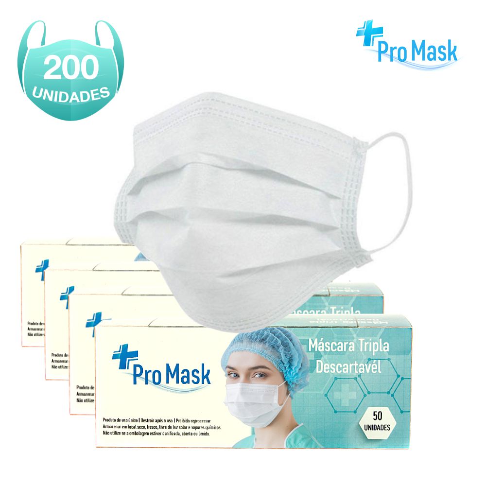 4 Caixas de 50 Máscaras, totalizando 200 máscaras descartáveis.