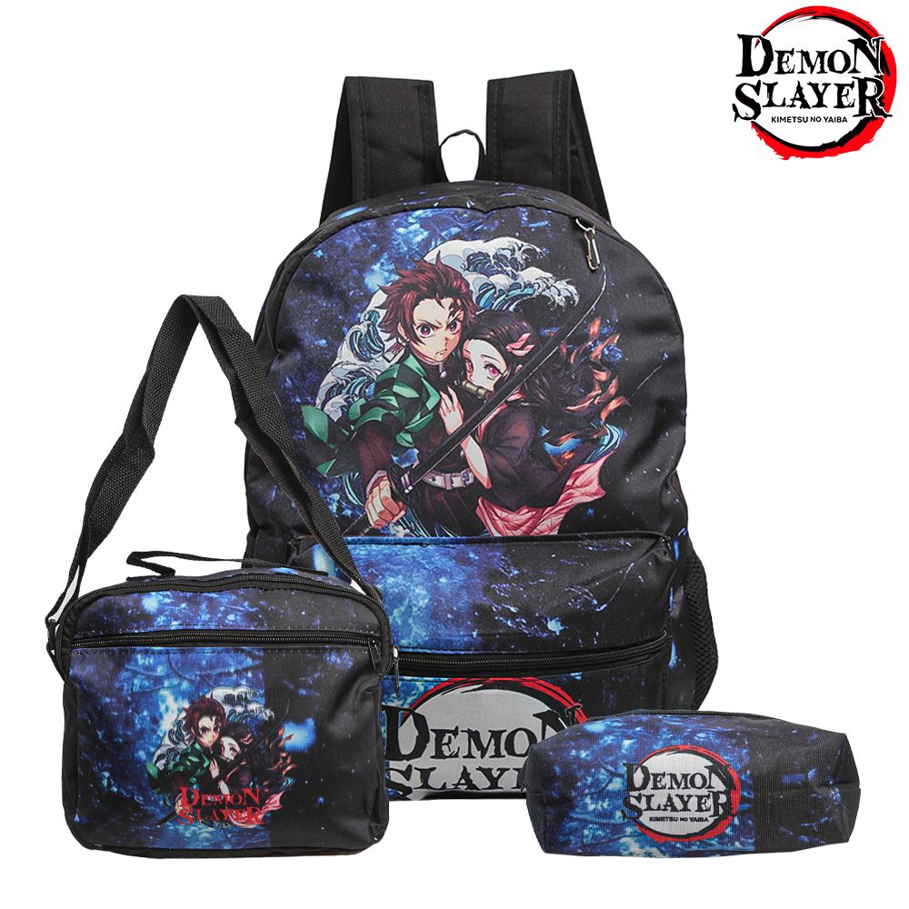 Kit Mochila Escolar Infantil Kimetsu No Yaiba Nezuko Costas, acompanha lancheira e estojo. Possui alça de mão reforçada. Agora você pode levar sua mochila no seu dia a dia ou acompanhar você na escola. Sua abertura maior se dá por zíper com puxador. Na parte de dentro possui amplo espaço para a guardar diversos materiais como cadernos, livros e estojos. Na parte da frente, possui bolso com zíper para a guardar pertences de menor tamanho.
