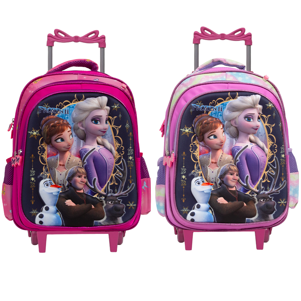 Kit Mochila Escolar Infantil Frozen Com Rodinhas, acompanha lancheira e estojo. Agora pode levar sua mochila no seu dia a dia ou acompanhar você na escola. Possui alça de mão reforçada. Sua abertura maior se dá por zíper com puxador. Na parte de dentro possui amplo espaço para a guardar diversos materiais como cadernos, livros e estojos. Na parte da frente, possui bolso com zíper para a guardar pertences de menor tamanho, e bolsos laterais.