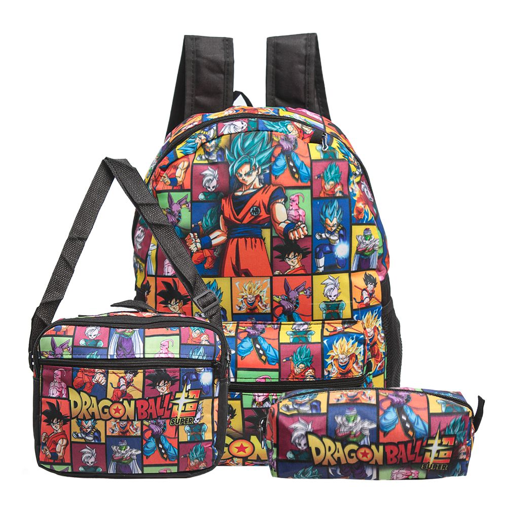 Kit Mochila Escolar Dragon Ball Z Infantil Com Rodinhas, acompanha lancheira e estojo. Você agora pode levar sua mochila do Dragon Ball Z no seu dia a dia ou acompanhar você na escola. Possui alça de mão reforçada. Sua abertura maior se dá por zíper com puxador. Na parte de dentro possui amplo espaço para guardar diversos materiais como cadernos grandes, livros e estojos. Na parte da frente, possui bolso com zíper para guardar pertences de menor tamanho, e bolsos laterais.