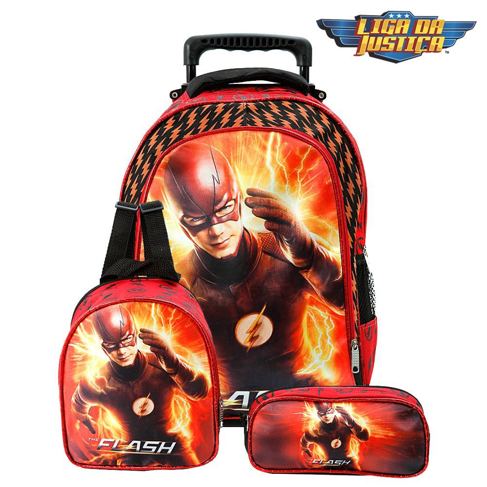Kit Mochila Escolar Infantil Jogo Flash rodinhas, acompanha lancheira e estojo. Possui alça de mão reforçada. Agora você pode levar sua mochila no seu dia a dia ou acompanhar você na escola. Sua abertura maior se dá por zíper com puxador. Na parte de dentro possui amplo espaço para a guardar diversos materiais como cadernos, livros e estojos. Na parte da frente, possui bolso com zíper para a guardar pertences de menor tamanho e bolsos laterais.