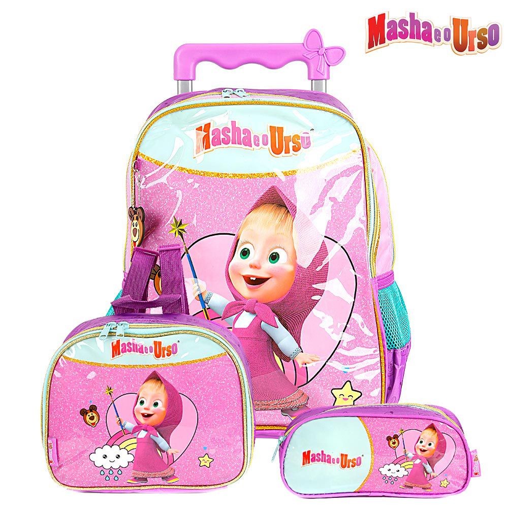mochila, escola, escolar, meninas, infantil, rodinha, personagem, desenho, material, Masha e o Urso, kit.