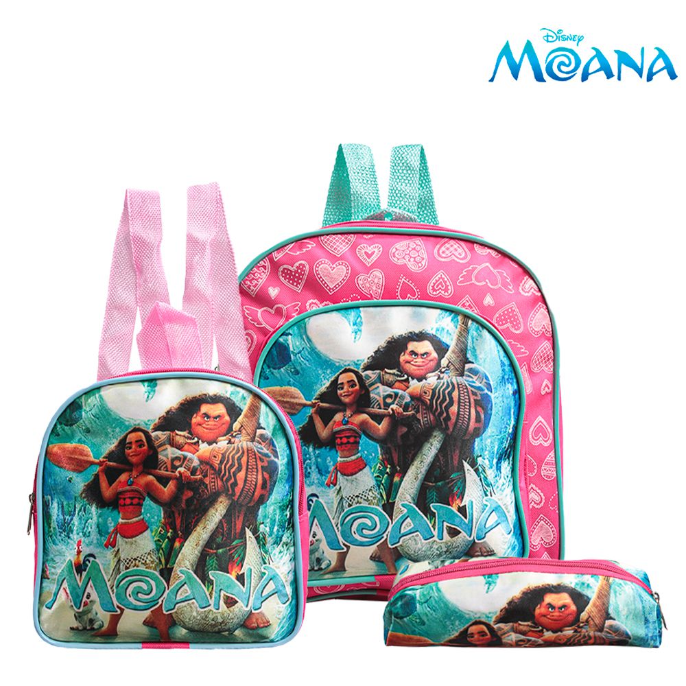 Kit Mochila Escolar Infantil Pequena da Moana De Costas, acompanha lancheira e estojo. Possui alça de mão reforçada. Agora você pode levar sua mochila no seu dia a dia ou acompanhar você na escola. Sua abertura maior se dá por zíper com puxador. Na parte de dentro possui espaço para a guardar diversos materiais como cadernos, livros e estojos. Na parte da frente, possui bolso com zíper para a guardar pertences de menor tamanho.