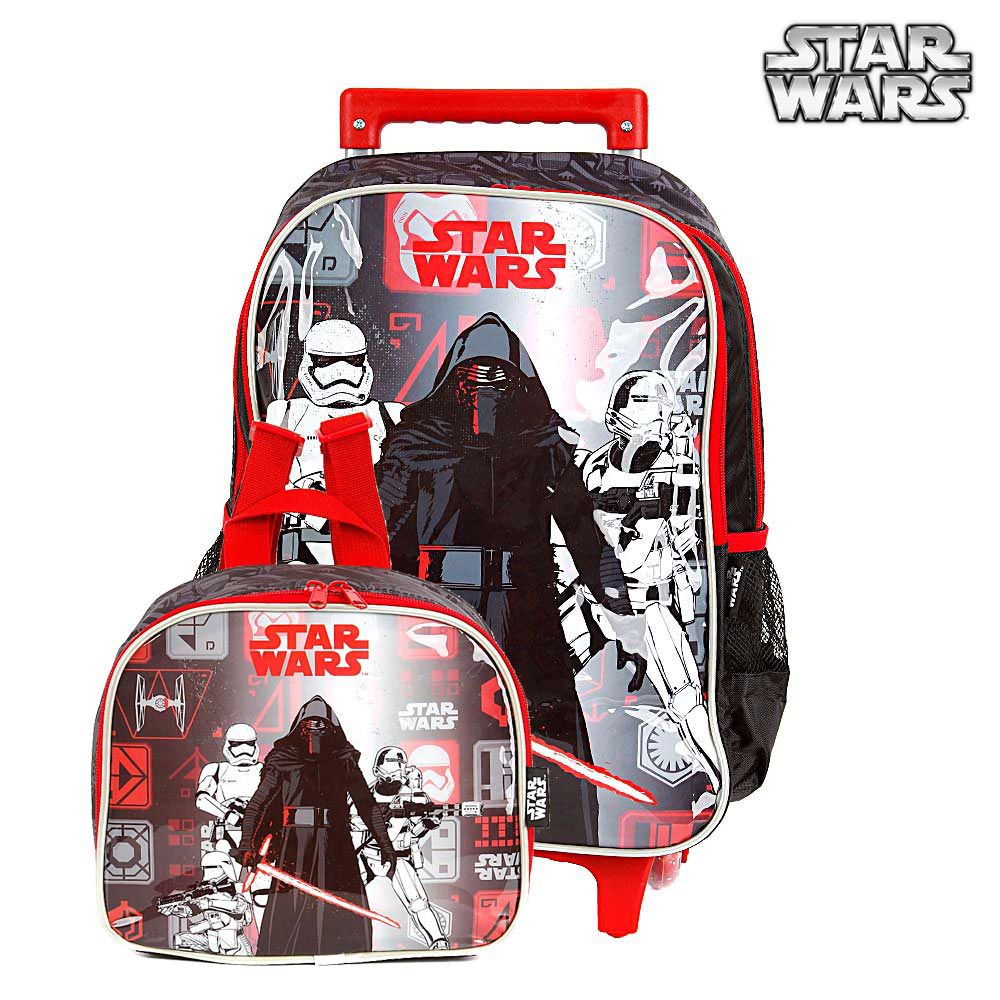 Kit Mochila Escolar Infantil STAR WARS Com Rodinhas, acompanha lancheira. Agora você pode levar sua mochila do STAR WARS no seu dia a dia ou acompanhar você na escola. Possui alça de mão reforçada. Sua abertura maior se dá por zíper. Na parte de dentro possui amplo espaço para guardar diversos materiais como cadernos grandes, livros e estojos. Na parte da frente, possui bolso com zíper para guardar pertences de menor tamanho, e bolsos laterais.