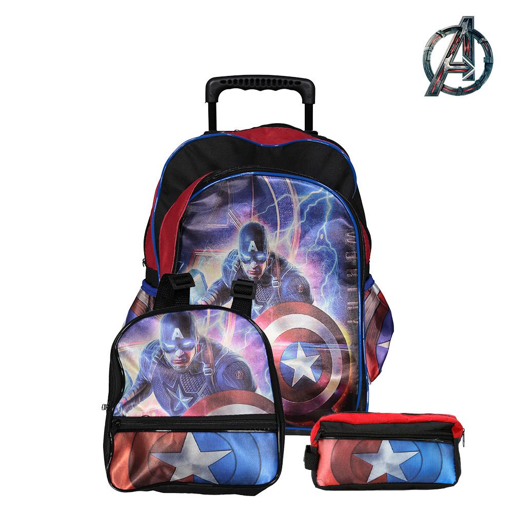 mochila, escola, escolar, meninos, meninas, infantil, rodinha, material, personagem, capitão américa, vingadores, avengers ,marvel, heróis.