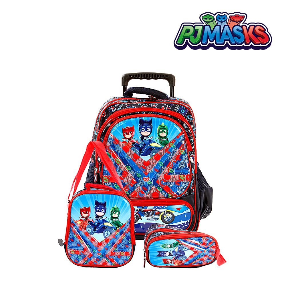 mochila, escola, escolar, meninos, infantil, rodinha, personagem, desenho, herois, material, pj mask, disney, jr.