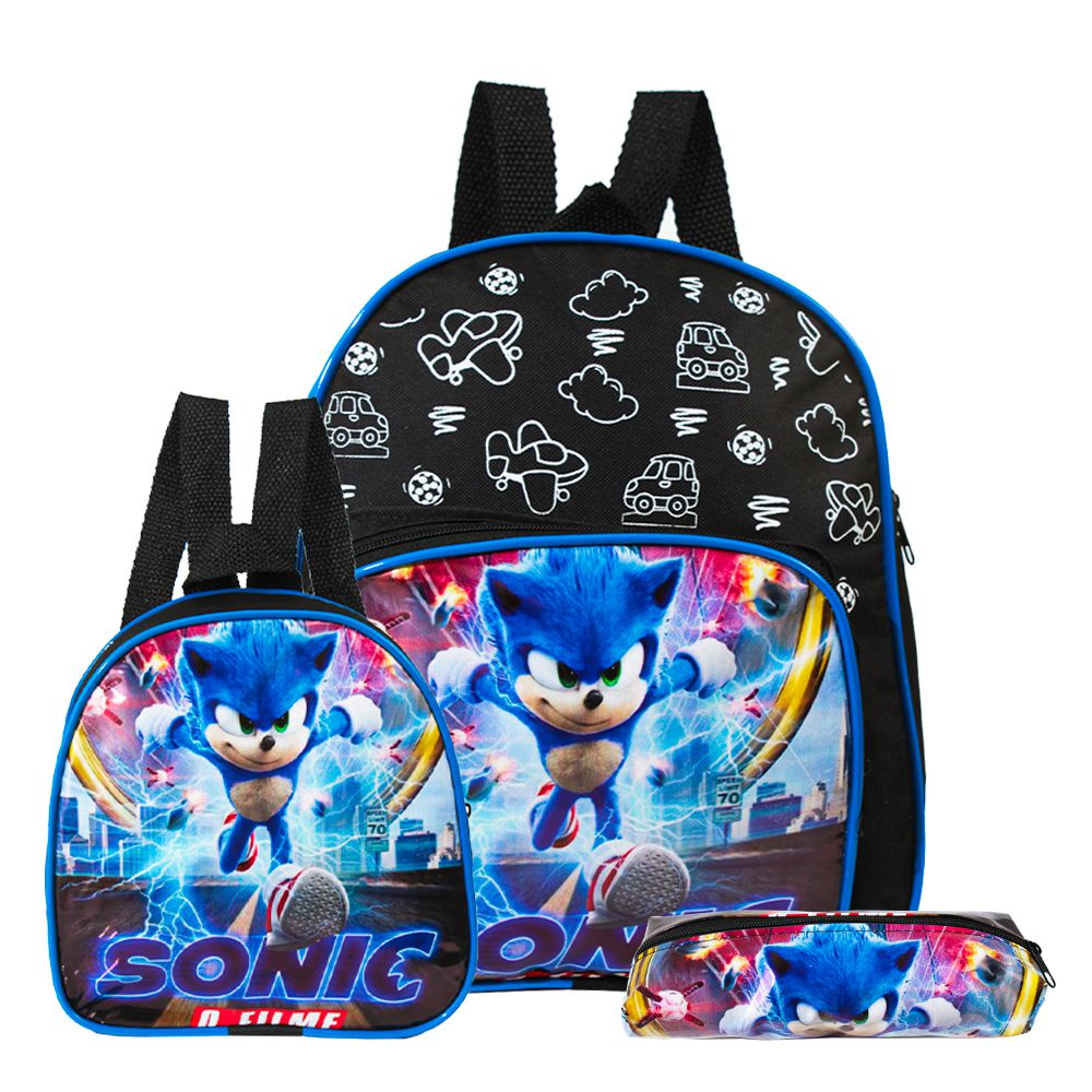 Kit Mochila Infantil Pequena Sonic Runner Filme de Costa