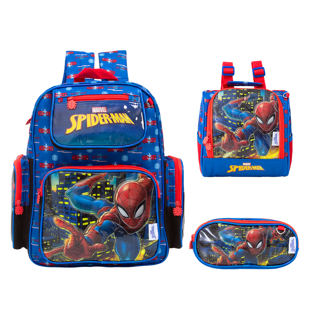 Kit Mochila Infantil Rodinha Homem Aranha Spider Man Aranhaverso De Costas, acompanha lancheira e estojo. Agora você pode levar sua mochila do Homem Aranha no seu dia a dia ou acompanhar você na escola.